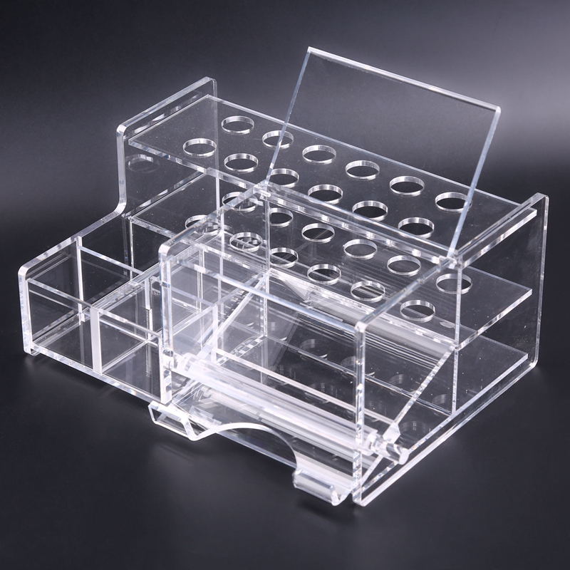 產(chǎn)品描述:亞克力制成的收納盒,采用透光性高達(dá)96%的材料,外觀晶瑩剔透,能全方位的展示口紅的色澤,造型新穎大方,能夠多產(chǎn)品集中展示。